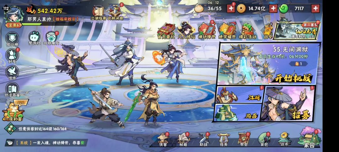 这关对于平民玩家超级难(84-3加强版),难点在于: 第二个boss金莲超级肉需要完美功法(没有八星融汇前功法基本拿不全),最后boss老魔给玩家的输出时间只有10秒。如果不使用方法估计至少450万~500万攻击才能过。下面就来说下方法: 1)功法选择: 四阶败絮+核心+乱刃+会心1+会心2+疾风1(这关需要极致伤害, 试了无数次,乱刃在看脸的情况下输出高一大截) 2)释放绝技的时机,一定要等主c