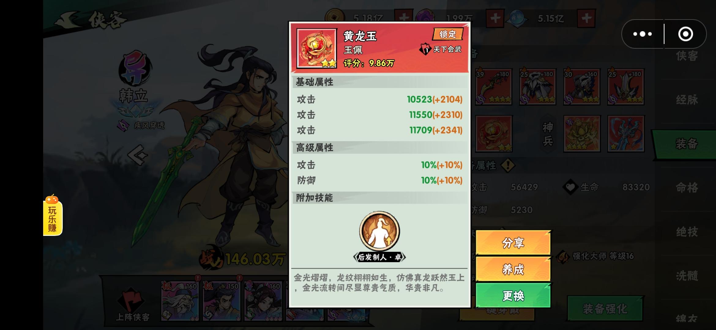 这关过的艰难,耗了不少体力,也调整了不同打法,最后考虑到怪潮凶猛,不想浪费一个招式功法,就让带一击的掌命当主C,同时为了对抗BOSS,给韩立选了核心。双疾风+败絮+圆缺必选,还剩下的一个首选修神,但是效果不佳,缩短的调息被疾风大大稀释,12%的终伤也不够看,反而尝试了撕裂,效果对boss肉眼可见。 功法来的很顺,第二个boss前就完全成型,于是摧枯拉朽,连武魂都没使用(正常情况至少用一个),后面的