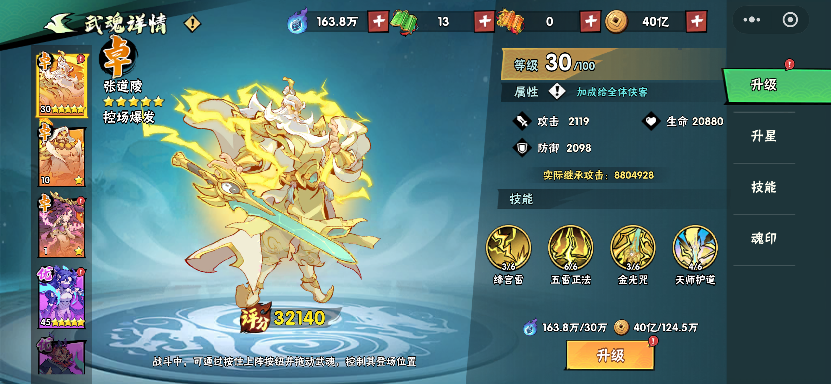 张道陵的技能伤害是根据什么计算的?是他等级的攻击力吗?必须升到一百级吗?