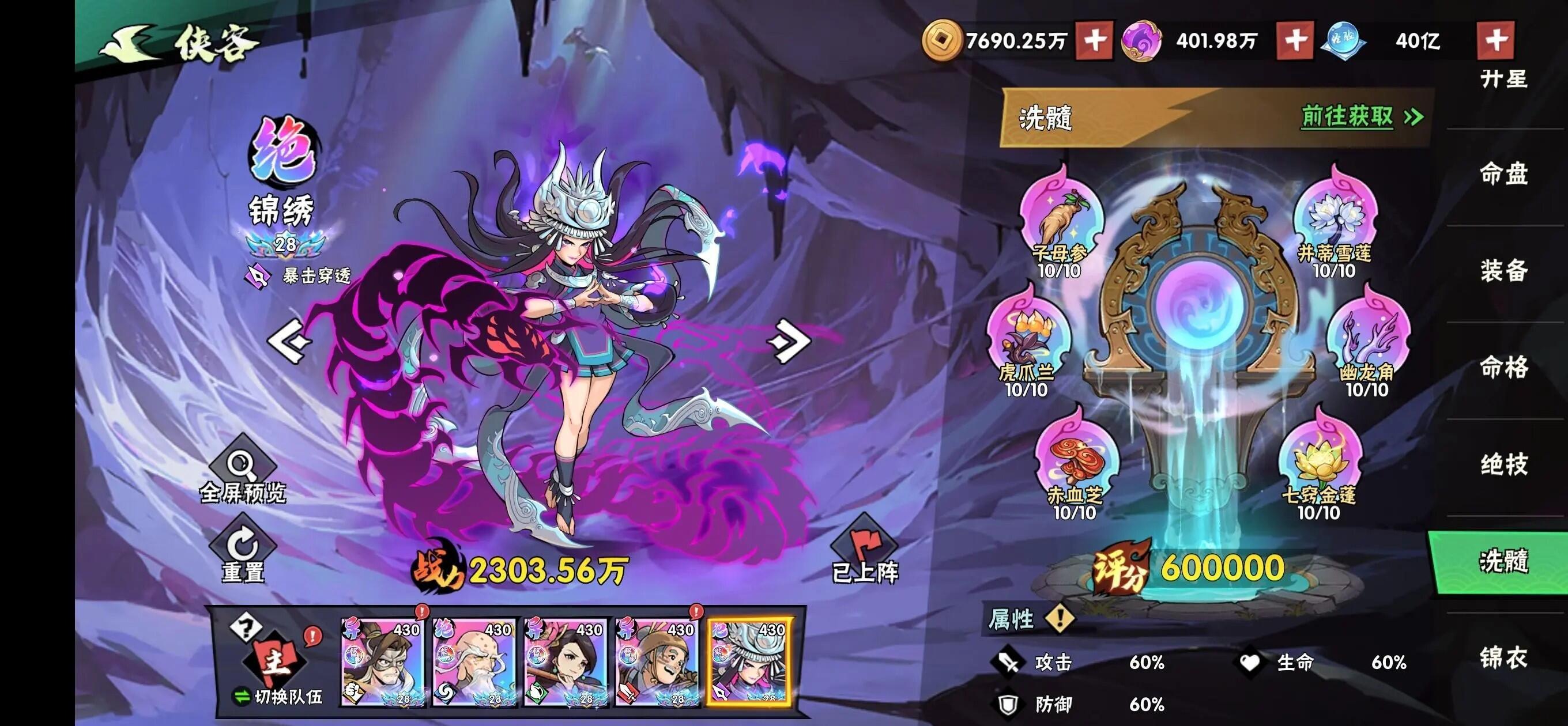 70-2之卡了很久了,之前到4分多钟就撑不住了。很久没打,今天想试试,真给我打过了。阵容如图所示,没有一击,靠硬实力过的。当然有一点技巧,核心出装:南宫婉,掌命,气绝这关难在小兵太强,四分钟开始只剩南宫婉和掌命,其他武侠已经下班,不用浪费复活机会给他们,当很多飞机怪出场,要切换1倍速。4分多钟会有一次大波怪,一定要留气绝,把怪清掉。不要想死了再复活击退怪群,剩下两个武侠基本上这波秒去世,来不