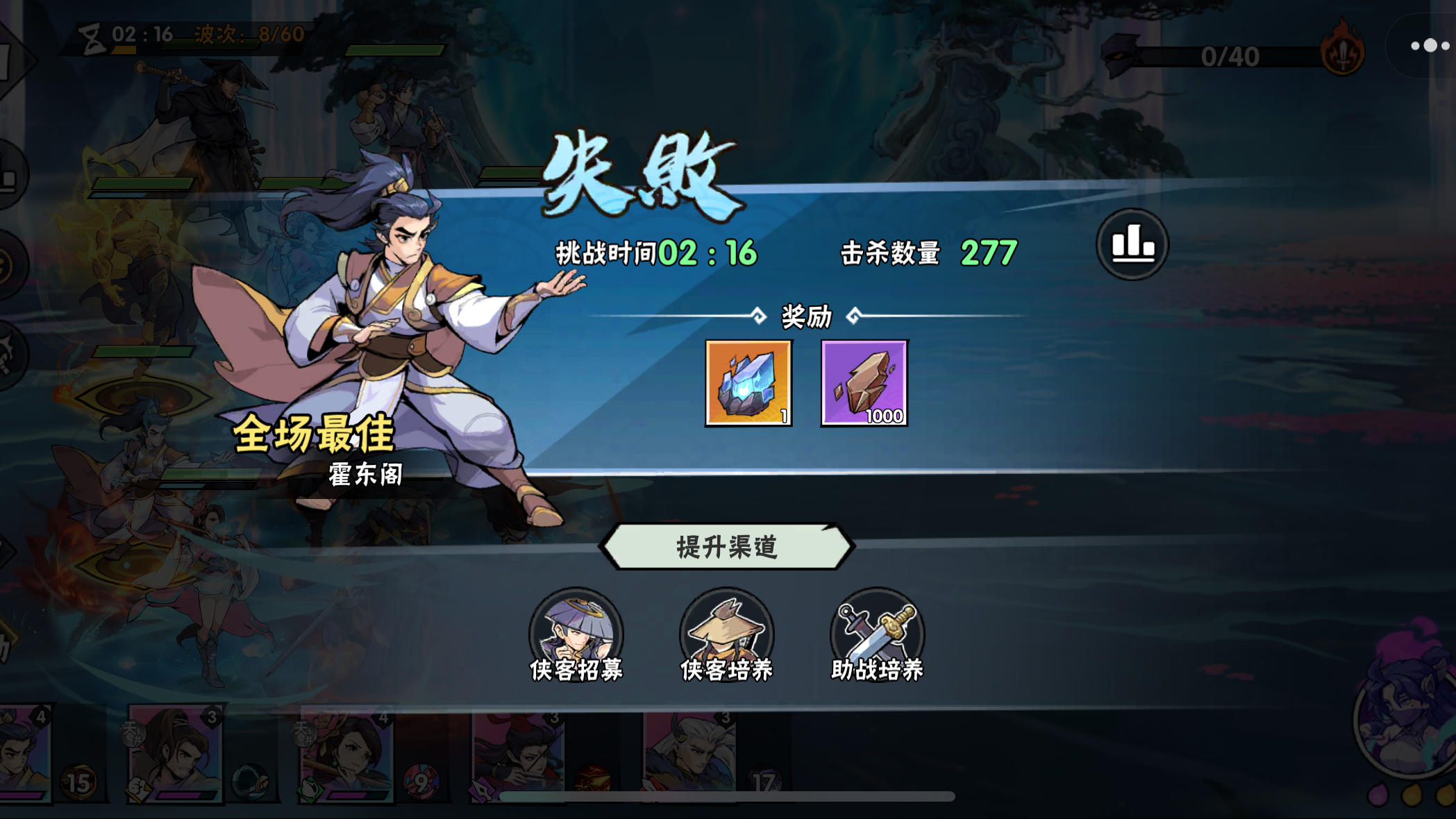 先吐槽下后期提升攻击力的收益也太低了,提升了20-30万攻击力打boss该剩2管血,还是剩两管血[表情_捂脸哭]。 这关是源源不断的眩晕怪,源源不断啊!!!面临艰难的抉择,韩立戴一击打不过boss,韩立戴擒贼打不过小兵。 最终过关还是选择韩立戴”擒贼”过的关。全程需要时刻注意眩晕怪,所有绝技全部用于清眩晕怪。 视频最后附各侠客属性,玉佩,洗髓,命格供参考!