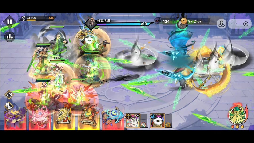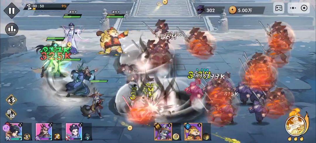 极限关卡,祭祀关,估计得卡一段时间,先发个前3分钟视频。说下配置,韩立一击+叶凡扶风+白板关羽+卓老虎,开局先拿双风,金钟罩,第一个boss交给关羽。关羽佩戴卓品魂印,选加真实伤害的。 问题: 后面的boss都是这么变态的吗?一刀秒秒秒,8星金钟罩能不能抗住不死人?有没有懂的朋友,太难了[表情_流口水]