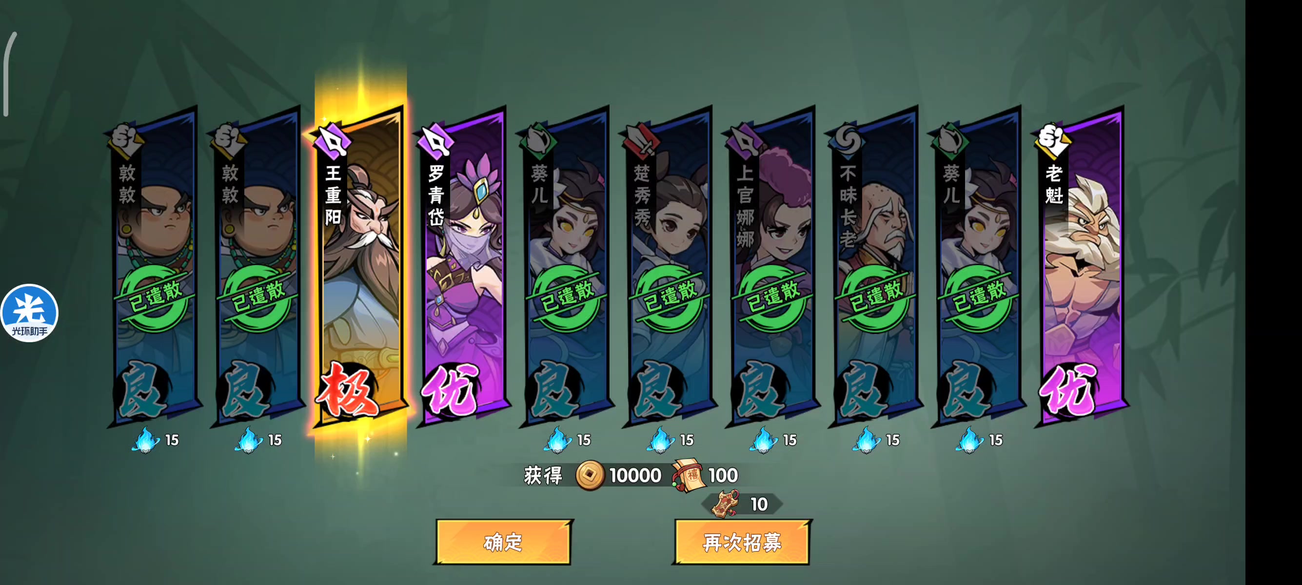 两轮半,2王重阳1秦真1吹雪0霍东阁1张三丰