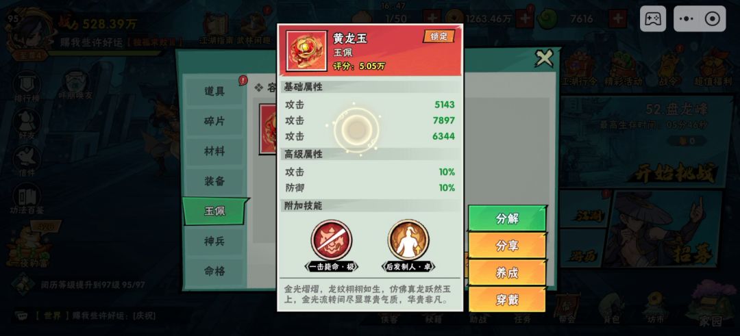 今天凌晨玉佩活动,运气好刷了个单一击[表情_酷]。果断给南宫戴上推图。推图有一击和没一击是天和地。为什么给南宫戴?因为南宫难死,一击一直生效,而且南宫普攻分化出来的小环好像也有一击效果。很大程度上减轻姜的压力,打这关不用怕被小兵打死姜,基本没压力。