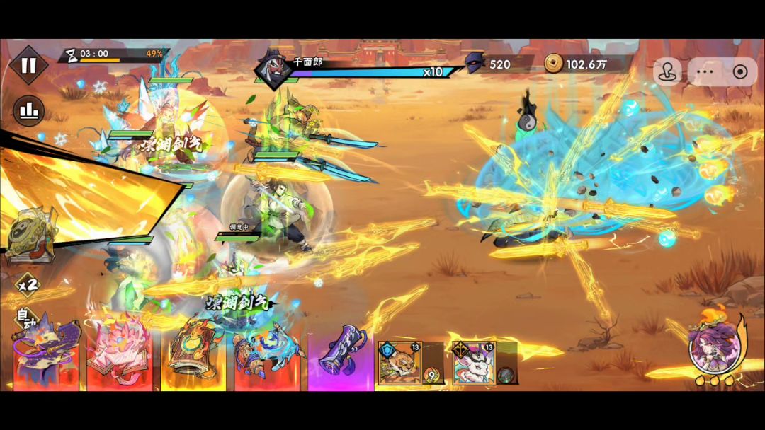 过关战力8700万。 古宝技能“别有乾坤”简直是100关以后的福音,可以关联两个侠客让他们同生共死(实战效果见视频中游戏时间6分钟),这个时间点韩立本来已经没血了,但是由于关联了江玉郎就不会死,且一直在进攻。 视频最后附古宝共鸣技能