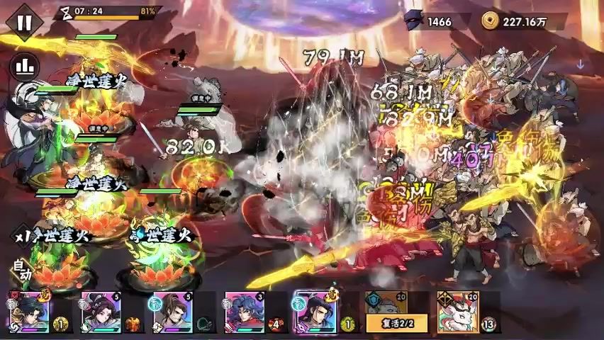 测试关卡95-1,下篇测试掌命(上篇已测试叶凡) 掌命数据: 猪命格,576万攻击,擒贼玉佩,二级气绝技+白板力绝技 特殊buff: 8级分筋错骨手,7级青莲幻境,恩仇录boss加层20% boss1: 掌命单杀到5行血,无法单杀后韩立加入 boss2: 掌命单杀到3行血,无法单杀后韩立加入 boss3: 掌命单杀 结论: 掌命无论在清小怪和打boss都不及叶凡。 视频最后附掌命属性