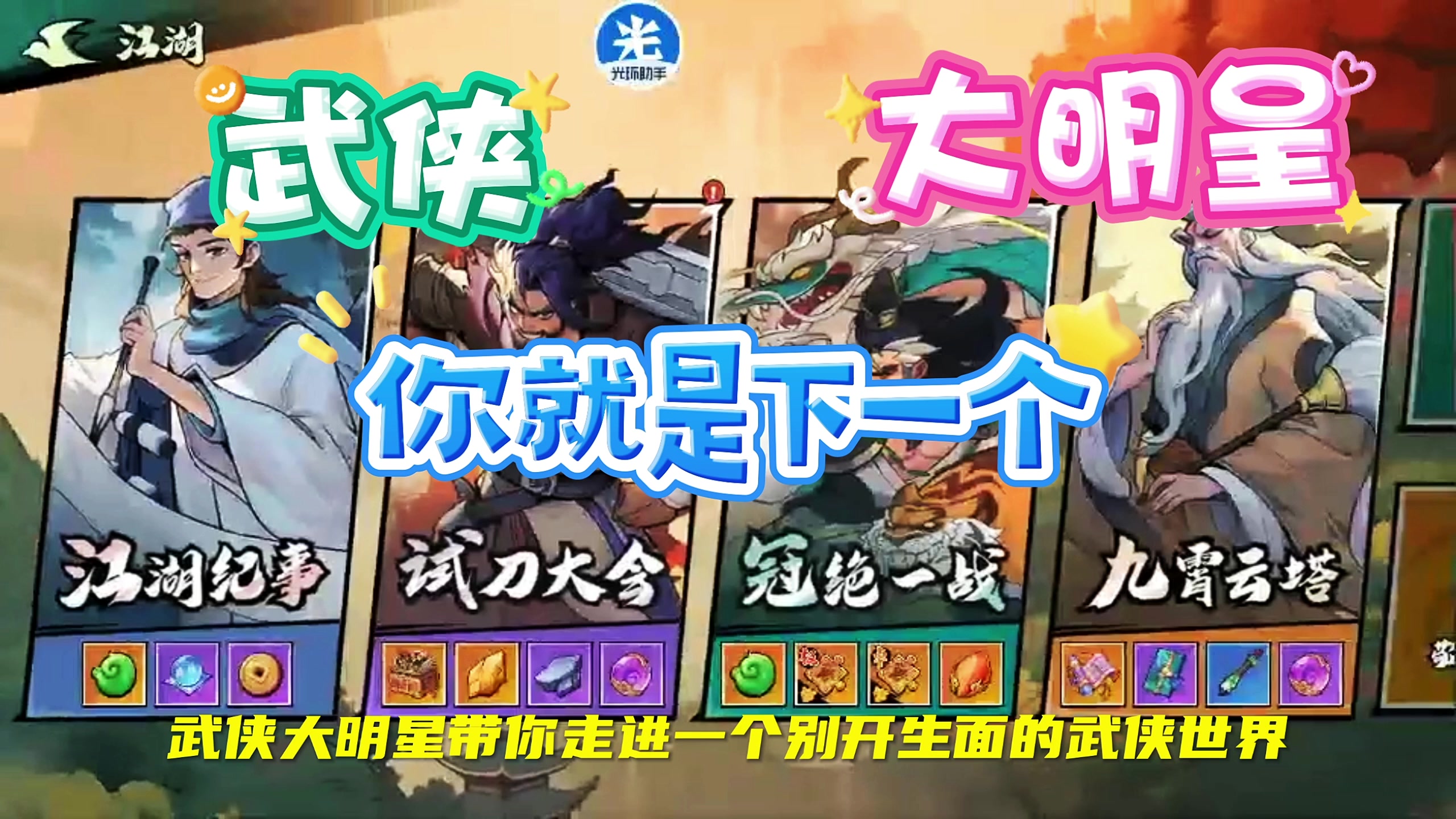 【武侠大明星】是一款国风武侠的策略Roguelike游戏,在刀光剑影、侠义情深的武侠世界里,休闲游戏,纵情江湖快意~#新游安利局Vol16#游戏安利#游戏讨论#休闲游戏#肉鸽游戏#游戏资讯
