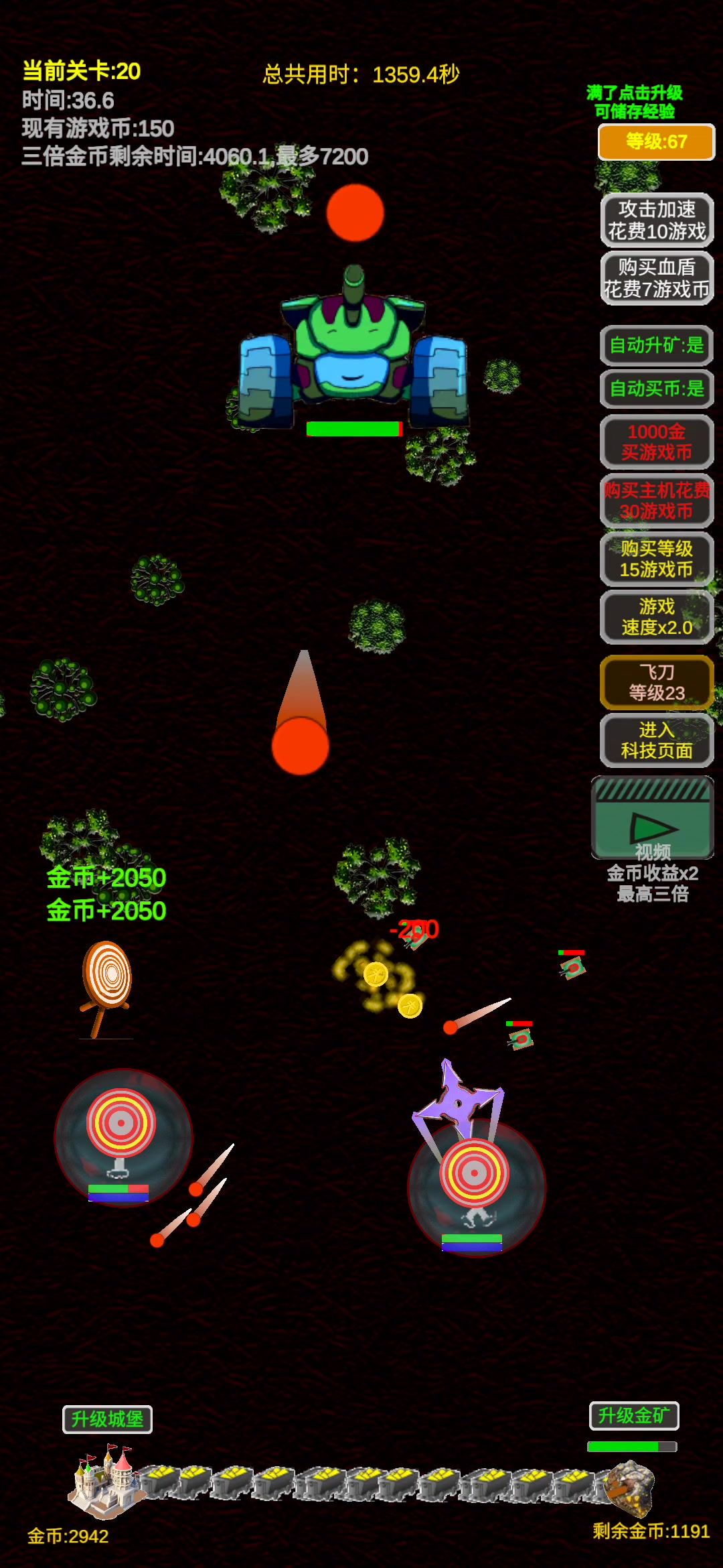 难度3速度开2倍有点费手,把金币科技换成血量科技会更简单。