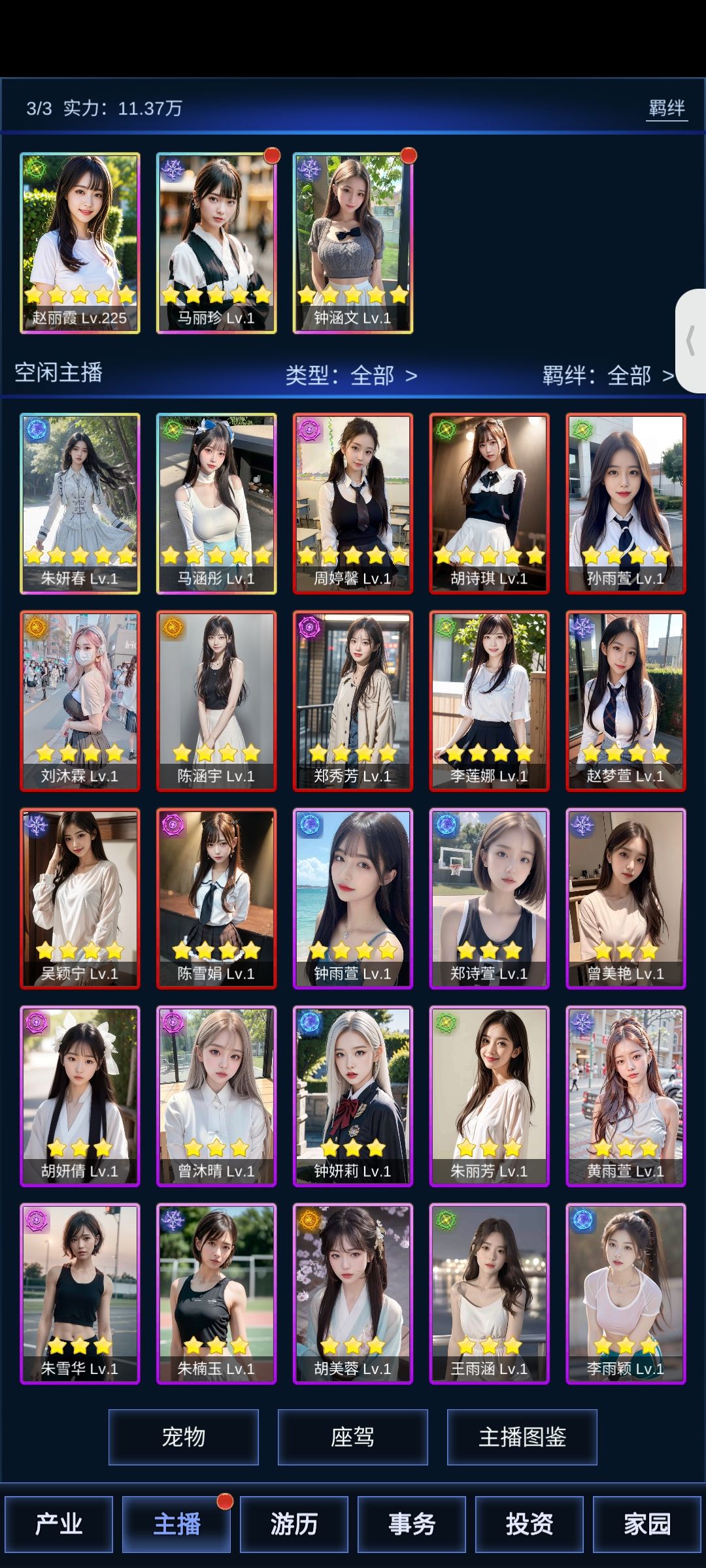 最近有一款游戏也是风靡一时❗❗讲述了一个996打工人继承遗产,成为公司的总裁经营美女主播的故事,直播时代中美女如云简直让人嘶哈嘶哈😍。但是如果想要成为一个出色的玩家还是需要一定的能力的。现在分享一些我认为比较有用的前期攻略: 1️⃣刷开局:争取刷到除限定以外的一个7星角色,再用万能碎片换一个,加上限定角色就容易达到八星。因为目前资源最多够培养三个满级,将角色堆满级的收益比平均升级推图更有优势。