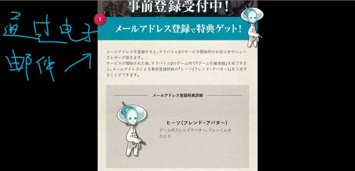 进入预先登录页面后有两种方式第一种选择后会出现这个页面发送后会收到回信说预先登陆完了第二种地址:http://www.terrabattle2.com/jp/prereg.html第一次写的不怎么好。。