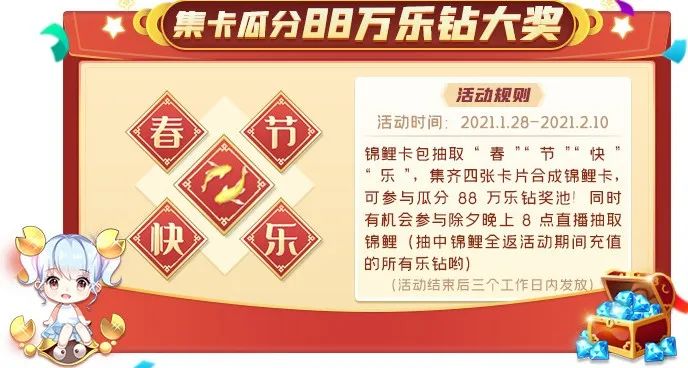 春节福利 | 锦鲤召唤!集卡瓜分88万乐钻奖池?游戏竟然可以这样玩!