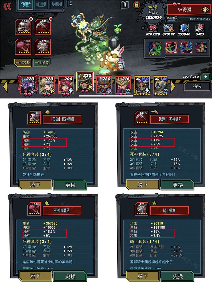 【闪避型】英雄装备:忽略等级和套装完成度,看红色框中属性。