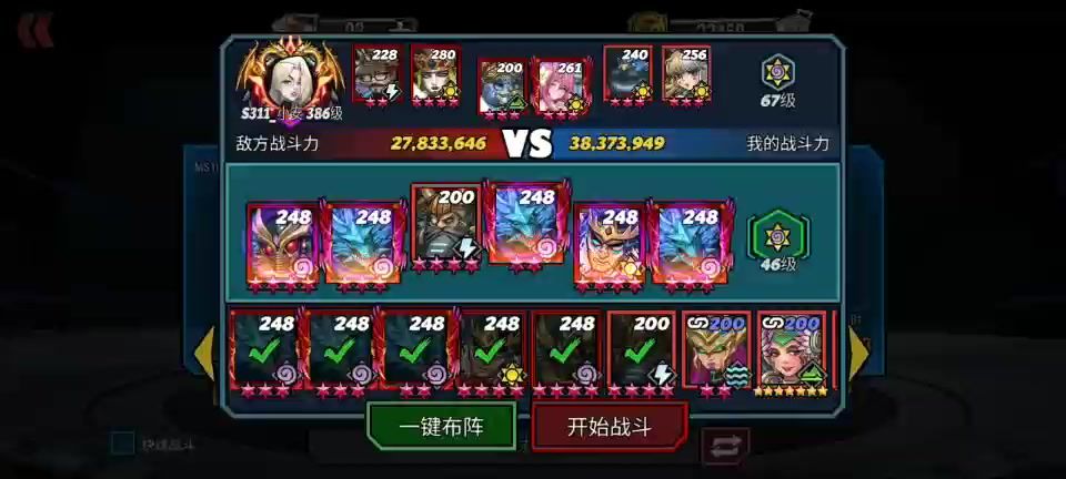 给芝诺比阿正名,高觉芝诺比阿巨能抗,扛了三倍伤害。 如果对面是唐僧就这个阵容,反正不能加盾。 如果对面是火龙,就可以潘多拉换句芒,边挨打边加血,续航更持久。 如果对面是大象,潘多拉可以换狂加盾的卡,大象的毒不透盾,福尔摩斯和斯托斯之类的。 可以看到后排的加怒情况,剑魔都能第2回合开大。