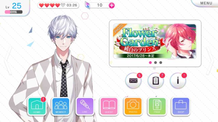 相信大家都玩过很多类似游戏都没什么问题,这里就简单写个攻略先从最下一排说起,首先是进入游戏的界面,人物为队长,想调整的在编成里换队长就可以了。主界面上依次是收件箱,任务表和游戏消息收件箱可以领取任务完成后的奖励,打本的石头等,切换到中间是好友请求任务第一栏是主线任务,暂且这样称呼吧,主要是徽章什么的,第二栏是限时任务,萌新会有打到五章送SR以上确定券的任务,第三栏就是日常任务,送各种狗粮最