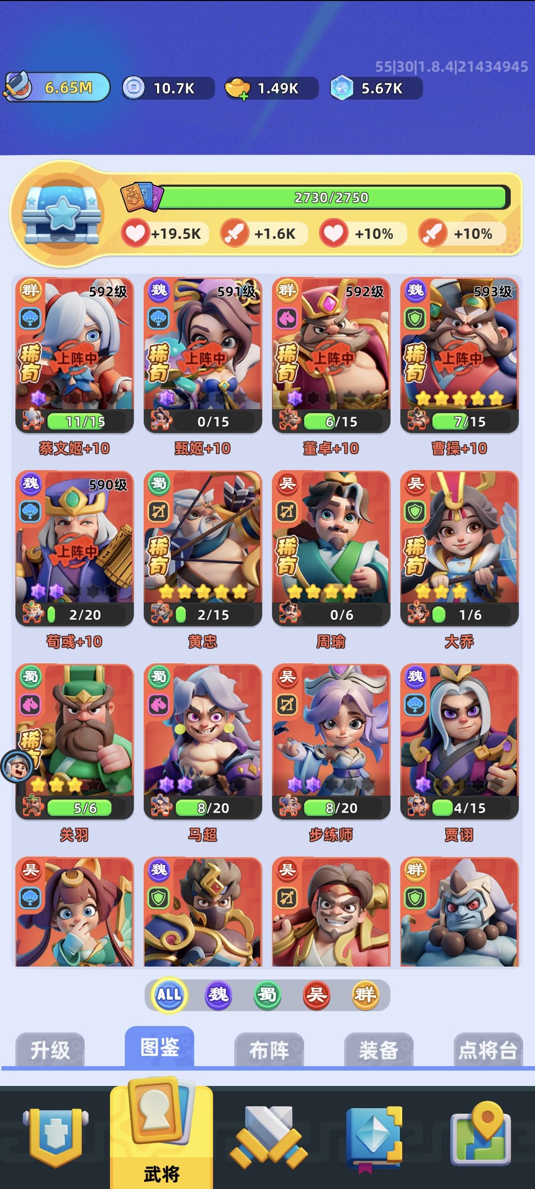 随着主线任务的完成,我们会逐渐解锁游戏的各种玩法系统,以下主要说明前七天每日必做内容以及升战技巧 第一天 1.武将: (1)武将放心升级和升阶,布阵时可以无损换将。 (2)每位武将平均升阶,提升战力后再开始匹配会轻松很多。 2.体力: (1)每天切记要购买体力,并把次数买完,点击体力+号即可购买。 (2)体力是快速升级段位的关键,游戏定期会回复1点体力,恢复满后需要及时消耗掉才会继续恢复。 3.关