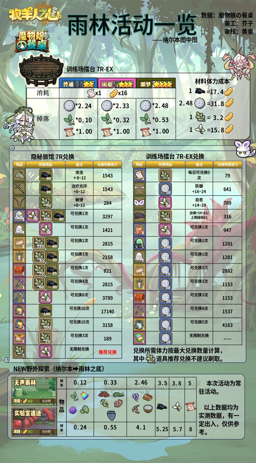 新人第一次准备参加活动不知所措?不知道如何准备? 有了本帖!一切都将迎刃而解!能够适应绝大多数活动! 1、体力! 充裕的体力是一切的保障!无论是剧情还是刷取材料亦或是活动道具皮肤,只要有体力一切就都能办得到! 体力足够甚至可以让你在活动期间提升等级,打通剧情,强化魔物,获得道具,摇身一变成为大佬! (1)、平常的体力积累,包括更新送的面包,平常获取的好吃棒(每天除随机以外可以去游乐场换!)花盘,