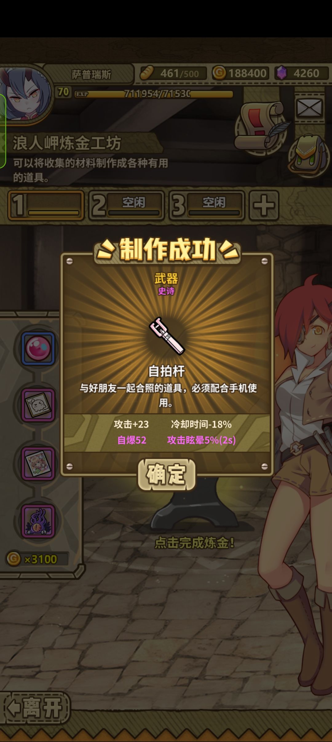 支线开始是在酒馆得到大叔的消息,这关难点在于打boss是一滴一滴血的掉,还有小怪干扰,而且boss伤害也不算低,好消息是不是必须打死boss,撑过一分钟也算成功。 这关食人花跟小蝙蝠这样的召唤流好用,人多力量大,能抗伤也能多打1点,这样磨也有机会把boss直接打死,磨不死也能扛过一分钟,如果有盾娘、江城爱这样的优质真伤效率会更高,但是并不是必须,如果没有好的奶妈或者召唤/真伤,练度就要高一点。 杂