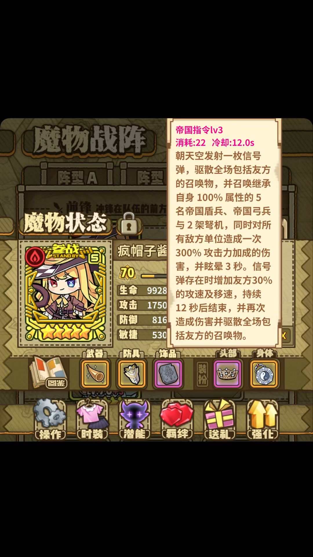 那么昨天我们刚刚过了9-20,继续来更新 18关之前都没有什么机制特殊,偶尔减个员,但是问题不大,过的都比较轻松。 9-18是一个大蝎子,看着唬人,实际上没什么难度。 9-19也是轻松拿下。 感觉9图最有难度的就是关底9-20了,机制就是击破石碑可以削弱boss跟小怪,石碑从👈👇👉👆依次出现,boss有免伤跟高伤,硬打行不通,开局先把魔物拉到左边角落,优先打石板,然后找个伤害高的去打石碑,打完石碑