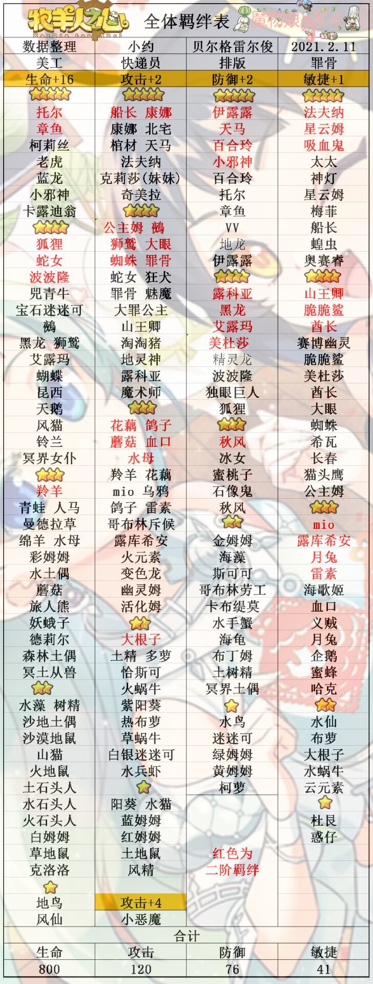 全体魔物羁绊表