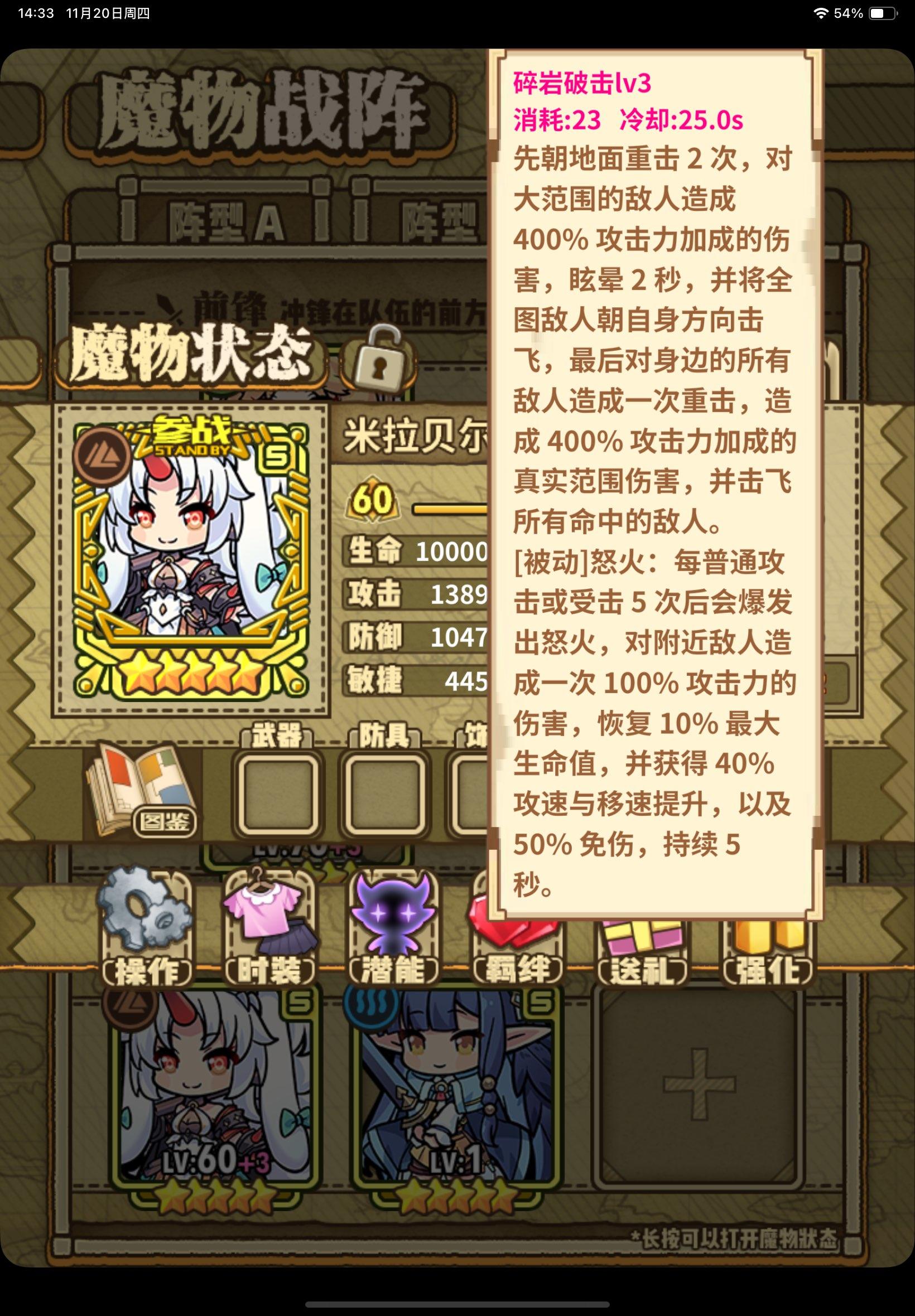 本次新图拜尔登地区三个新魔物,综合测试来看,pve推图都不行,但是新五星单体输出能力巨高,现在是pvp单挑里的神(估计会被砍,太变态了)。不建议新萌抽,单体机制不适合推图。 操流奇手的面板攻击成长很不错,敏捷略低,血防合格。如果整体评价一下的话,奇手输出稳定,单体伤害巨高,暂定第一,以后和章鱼比划比划就知道了。 测试来看奇手最适合走cd技能流,技能突破減CD,三破cd短才15秒,配合羁绊减cd和