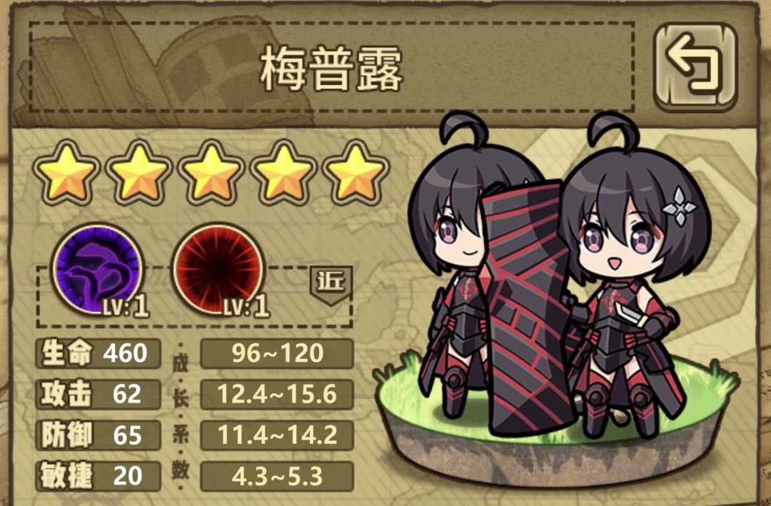 本次联动魔物强度凑合,没有无敌强力t0魔物,梅普露强度t0.5-t1.5,前期很弱,高破后期较强。莎莉t1.5-t2,后期拉跨,前期过度用还行。麻衣双子组合强度t1-t1.5控制能手。 盾娘身板妥妥的优秀,技能cd20s消耗18,面板属性技能没有毒点,可以放心练。 盾娘技能100%免伤5秒(暂时有bug无法触发),对3个敌人造成300%/300%/300%真实伤害,毒雾中毒敌人受到100%/120