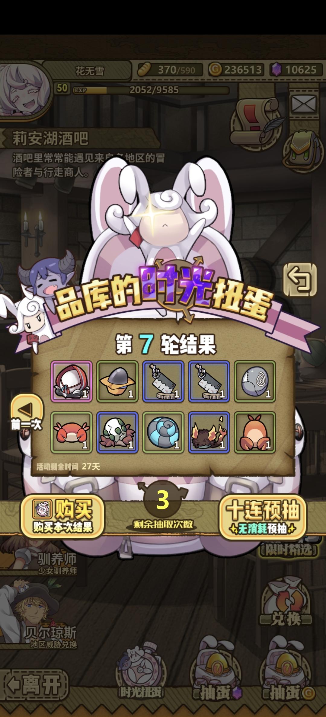 十次十连,七次没有五星蛋。剩下三次,两次单颗罗小涵,一次单颗的白时钟蛋。。。这日子咋过啊。。。这个概率真的是正常的吗?