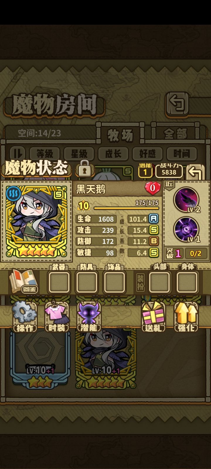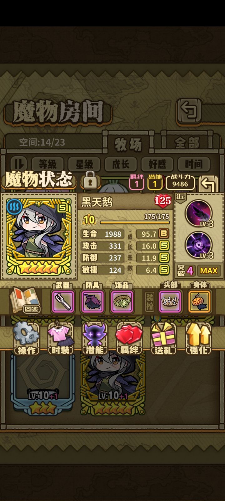氪金已经all in了,虽然就150抽。全是黑天鹅没有一只小红帽。幸亏彩姆礼包开了3个,不然都玩不到加特林了,这么多天鹅用了培育液一个满攻的都没有也是够黑的。啊~,就这样吧,一破的不升级拿来玩送死流得了…
