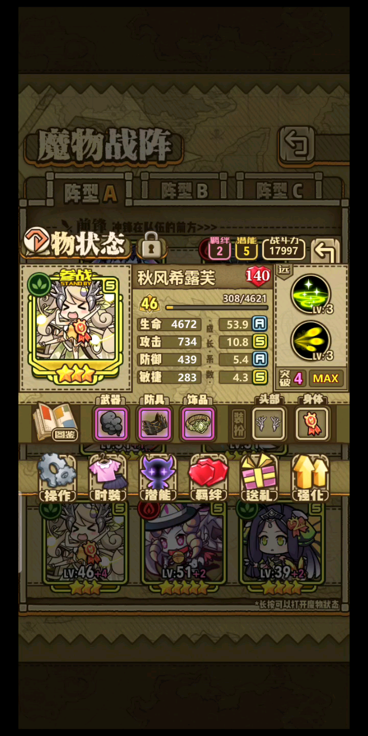 懒狗,装备乱配,等级53,破度偏低,不过面对绝大多数真伤怪还是乱杀(拿箱子测试,一破伊露露单靠一技能就能打出2w左右伤害)