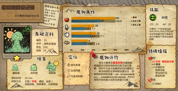 假期是玩游戏的最好时间,为了帮助新入坑的萌新们解决一些游戏问题,我们为此准备了很多,接下来就让我们去了解一下吧!1.萌新推荐榜:帮助新入坑的萌新解决如何选择魔物并告知一些魔物的功能定位2.对照表:用来查看推荐榜魔物的名称和魔物蛋图3.信息表:汇总了更多关于推荐榜魔物的信息,囊括了魔物蛋、官方名称、民间外号、获取方式等等内容,想要浏览需下载原图放大观看