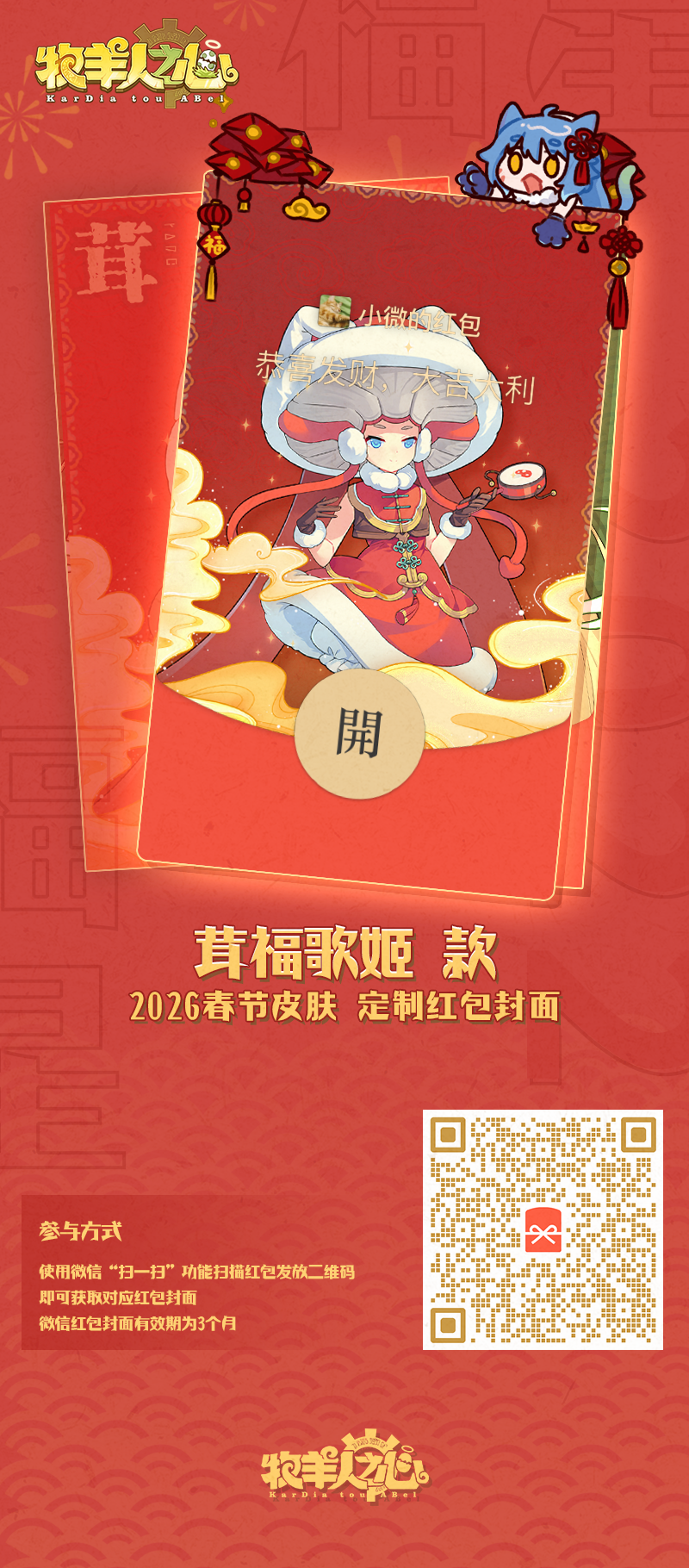 「茸福歌姬」款定制新年红包封面限量发放!祝愿各位驯养师:新的一年一马当先、马到成功、龙腾虎跃、前程似锦喵!感谢驯养师们一直以来的支持喵!——————————————————————————扫描图中二维码即可参与领取~
