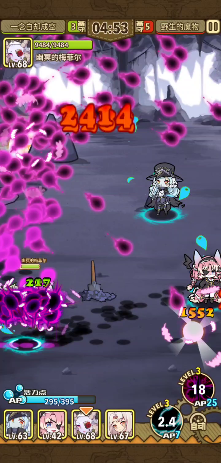 主要靠双天使无限控,萨塔喵高额对群流血伤用来加速小绿姆的死亡,以减少过关时间。