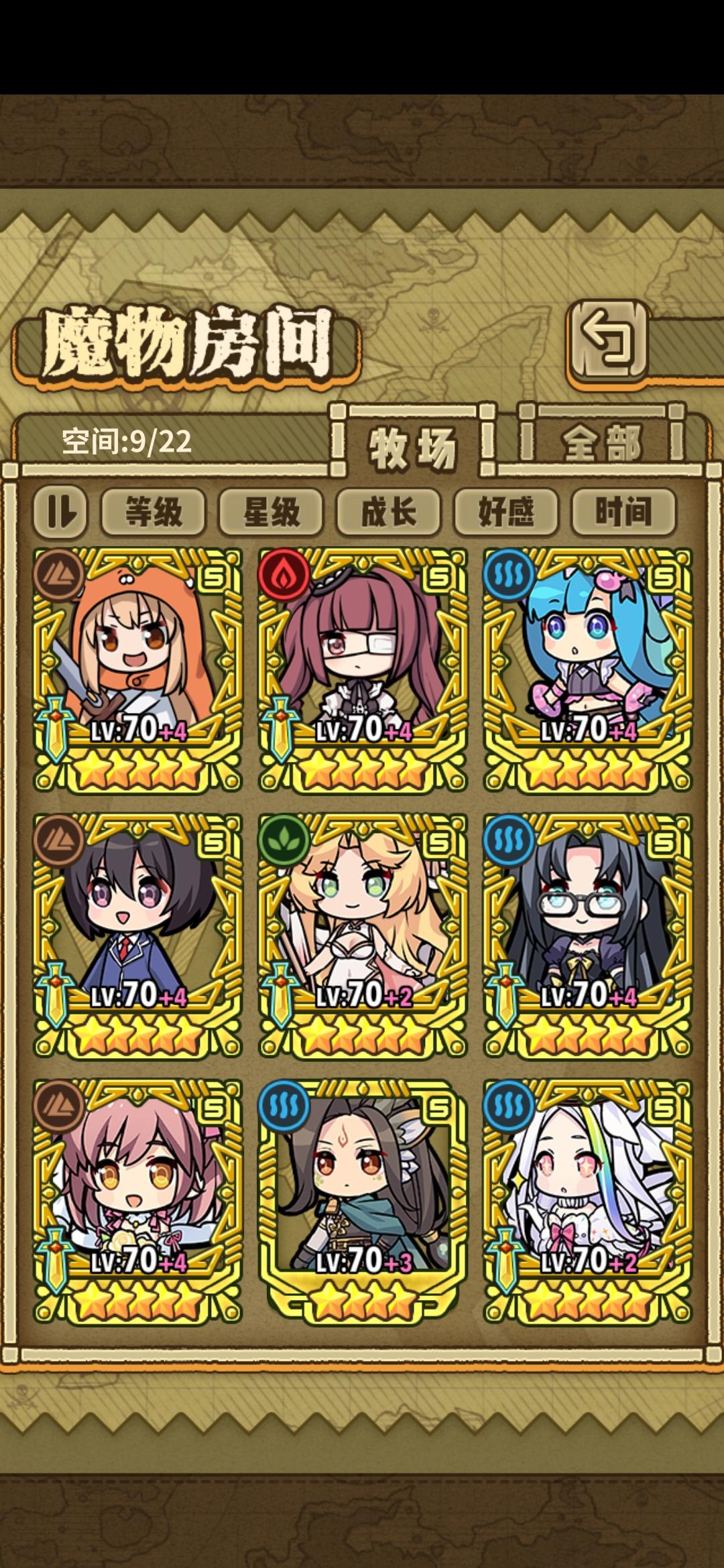 一、一堆五星,感觉都很拉跨,不想浪费资源。卫圣三破,白马二破,其他的全满破了,虽然还有6个彩蛋,22个白蛋,但常驻副本也不想浪费,等歪吧。二、升星任务全做完了,除了脆脆鲨,其他等级都在60左右,不打算吃经验蛋了,计划是坐等双倍布丁顺便刷等级吧。升星70之后打算做sp(也当是打发时间吧)三、常驻副本共8个,现在5个副本的资源都兑换完了,还剩3个……也懒得探索了……不知道现在该干什么,反正不管