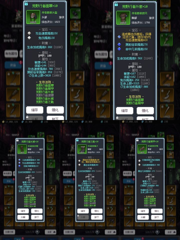 装备图如下,属性选择体能-生命值-生命加成-敏捷,堆生命值主要是为了猩红的伤害加成,溅射几率堆到20+,溅射倍率50+,攻速站街100+,暴击实战50+即可,杀怪回复堆个3-400就可以了,搭配回血宝石效果更佳。技能搭配如下,如果扛不住就把复仇换成元素伙伴(点出抗性),冷却尽量达到让烟雾弹只有2-3秒的空窗期。如果打飞升扛不住就把爆炸箭换成剑雨(点出数量和晕怪)。宝石搭配如下,群体鞭挞为主要宝
