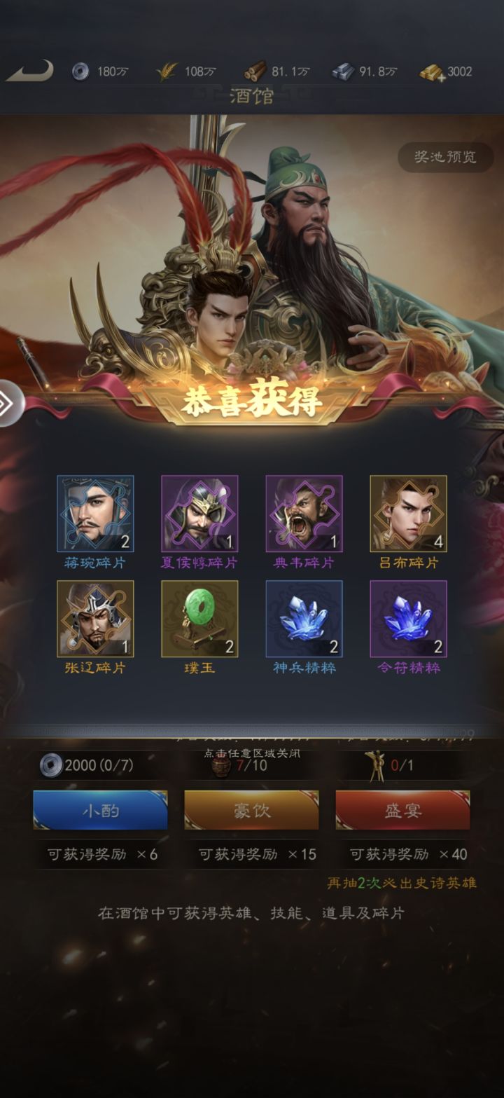 封面第一次拿下的神将镇楼,前排提示,此贴只是个人第一次玩的经验,不足之处还望大家多多补充。没找到什么攻略。今天从自己玩了几天的经历出发,谈谈国家年度奖励倍数问题。国家年度奖励由歼敌、战损、建设三部分组成,每年冬天进行分红。也就是战绩积累的高,倍数就高。歼敌:平民还是建议开荒时多出出力,争取第一年歼敌多一些,前七天重生免费,所以有啥技能碎片就用啥,战力高开荒快。国战时拿下加成打架更容易些,所以