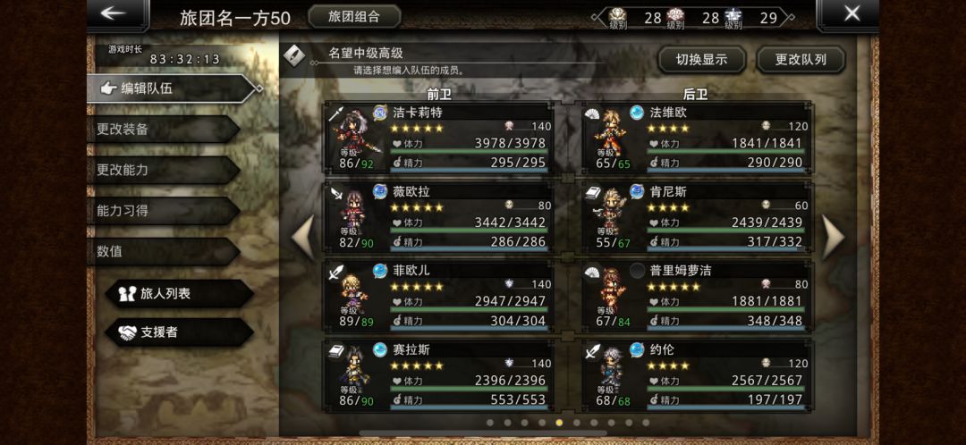 高级名望优化阵容,无伤必过有320速度要求