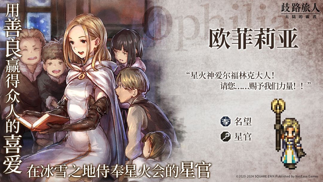 欧菲莉亚基本信息 角色名称:欧菲莉亚 职业:星官 突破弱点:杖、光 影响力:名望 初始星级:五星 旅人评测 #歧路旅人大陆的霸者 #游戏攻略