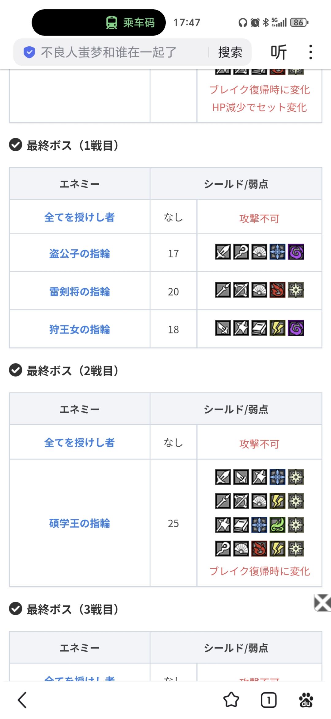 据说要打半小时,所以一直没打,五一准备清了最后的主线。明天卡神还能前来助战美滋滋,wiki没有弱点,搬运一份弱点造福跟我一样没打的咸鱼,明天操刀[表情_坏笑]