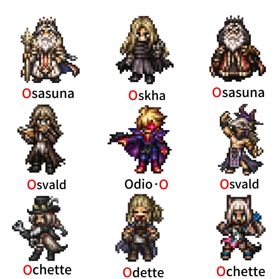 T0 米洛德 【大回复】:全体前卫HP回复 【物理破坏打击】:降低敌人15%物攻 【被动】:HP回复强化,回复技能效果20%up 总结:全体恢复魔法,提高前卫防御力,降低敌人物攻 希斯寇特 【神速】:自身速度提高20%持续两回合 【双倍突袭】:对全体敌人造成两次物理攻击 【被动】回合结束有20%解除自身异常状态 总结:无视弱点连击,全体攻击,异常状态回复 托蕾莎 【稍事休息】:回复自身hp解除异常
