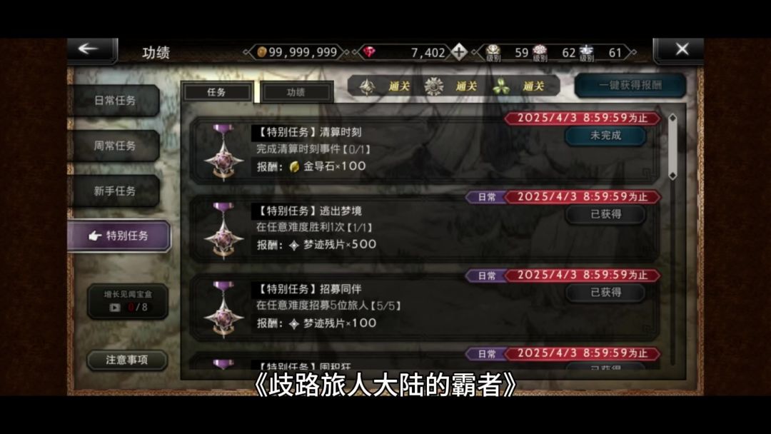 #歧路旅人大陆的霸者 如果完不成,就两个难度各打一次吧。