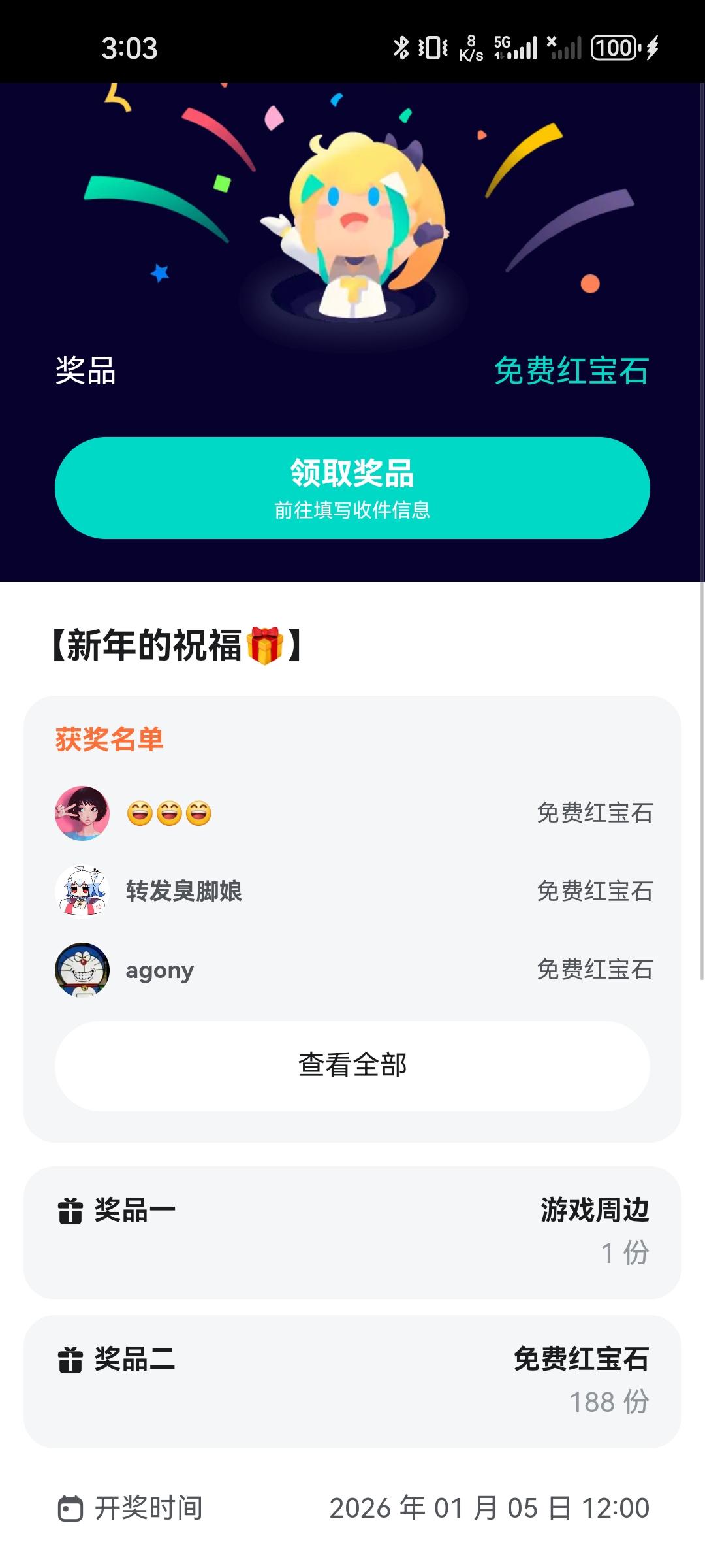 喵喵喵,新年的钟声已经敲响!舞者巴尔杰罗和游侠塔图洛克、游侠莉妮特一起抵达海边开启海边跨年度假之旅喵!莱拉也跟旅人们共同迎来了崭新的2026年,真是令喵兴奋!感谢旅人们一年以来的喜爱与支持,一起开启26年的冒险旅途吧~关注 并转发本动态,评论留下祝福“大霸2026新年快乐!”,1月5日莱拉将抽5位幸运旅人献上【游戏周边*1】!另抽5位幸运旅人奉上【免费红宝石x188】!一路星火,一路向前!新年快