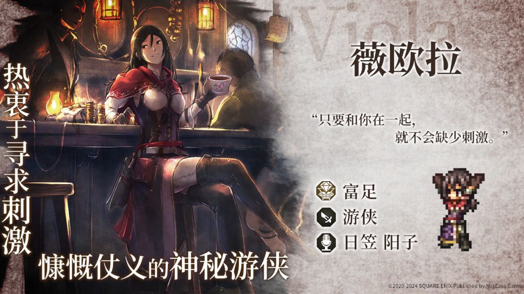追求刺激的女游侠薇欧拉,身上充满了谜团。 口头禅是“把被抢走的东西抢回来”。据说,只要和她对着干,一切全都会被夺走。 CV:日笠阳子 预约地址:#歧路旅人大陆的霸者#歧路旅人#歧路旅人手游公测定档516#歧路旅人国服角色#八方旅人
