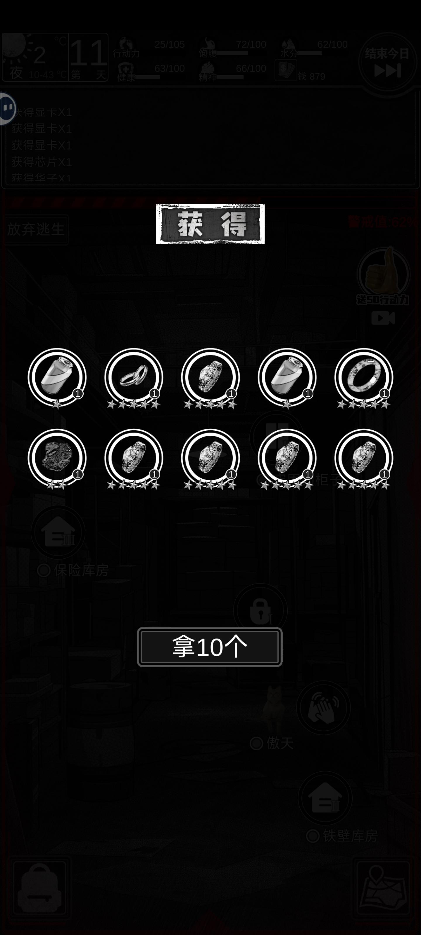 小提示:bug的数量超过5就会出现废弃功能。解锁兰湘需晚上去地下室偷东西,天数多了需要多偷几遍。第15天后白天翻垃圾桶也有概率被抓(bug已修阴戏是第30天。30天晚出去也要华子,记得留个华子。工作buff最有帮助的——使用老框架或激发创意,两者不能共存。晚上偷东西,相同等级下的库房价值最高,以买链条开库房为主。每天睡觉后才会自动存档。如果是晚上的结局任务,可以直接晚上去触发,不
