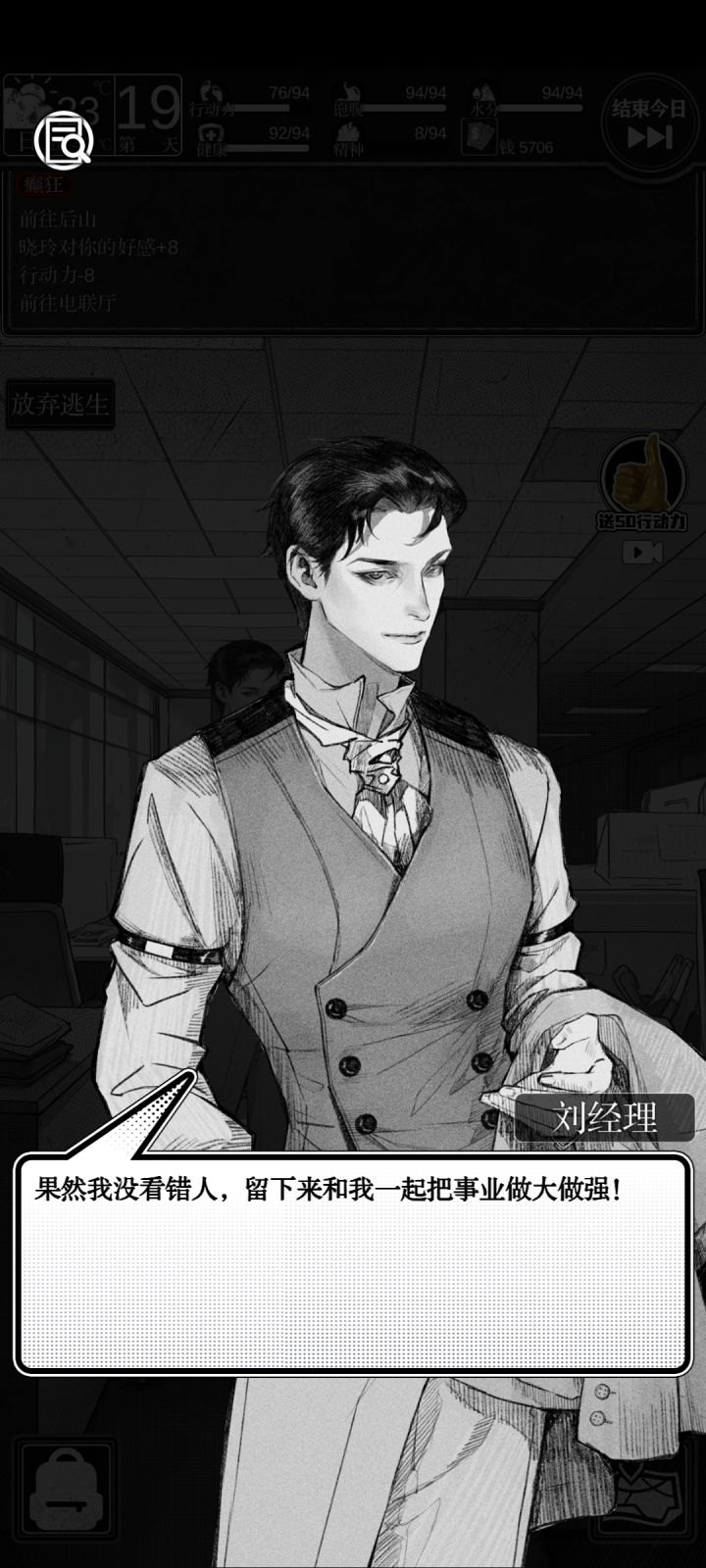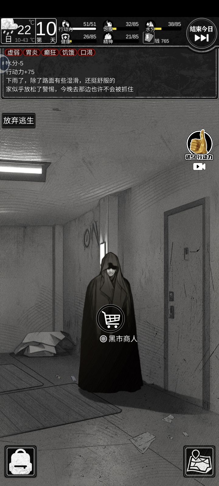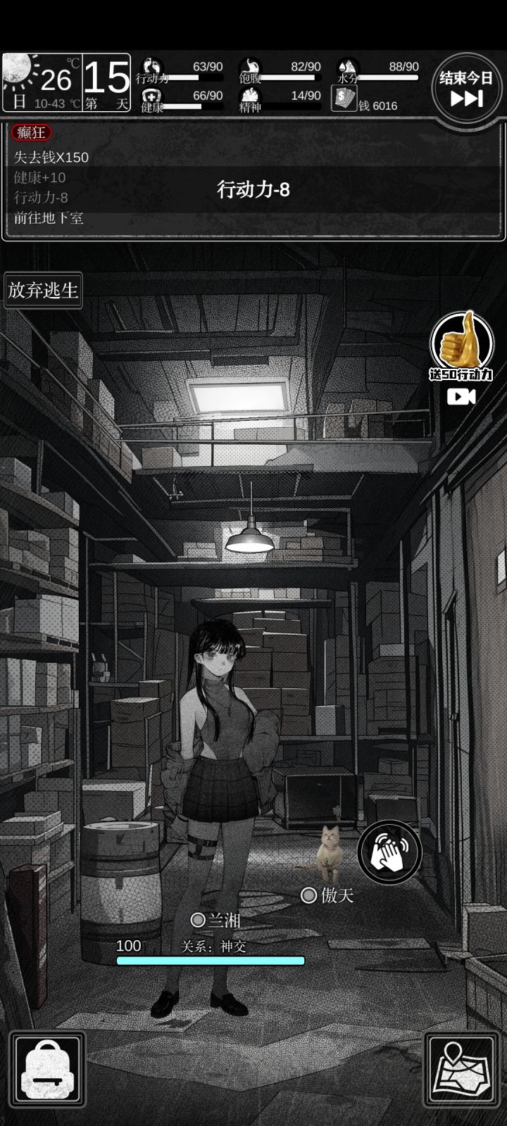 小提示:bug的数量超过5就会出现废弃功能。解锁兰湘需晚上去地下室偷东西,天数多了需要多偷几遍。第15天后白天翻垃圾桶也有概率被抓(bug已修阴戏是第30天。30天晚出去也要华子,记得留个华子。工作buff最有帮助的——使用老框架或激发创意,两者不能共存。晚上偷东西,相同等级下的库房价值最高,以买链条开库房为主。每天睡觉后才会自动存档。如果是晚上的结局任务,可以直接晚上去触发,不