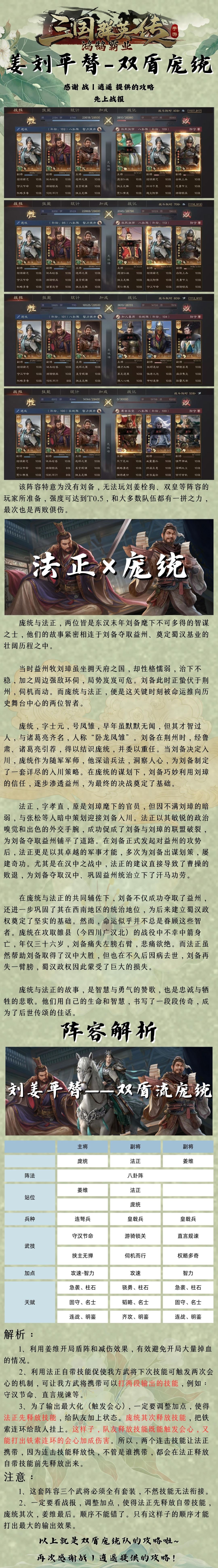 【武将攻略】这么肉?刘姜平替——双盾流庞统攻略来袭!