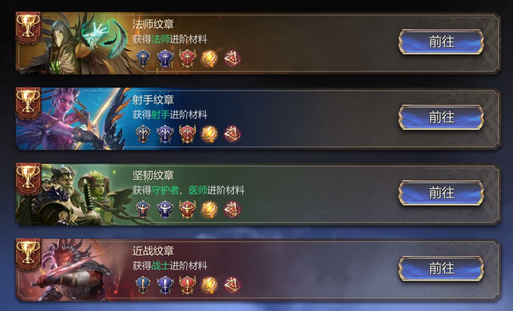 众所周知拿到新英雄需要进行升级、进阶、升星后才能使其初具战斗力。其中英雄进阶则需要用到对应的职业纹章,这时我们就需要去进阶本刷取所需要的纹章,并且随着英雄不断进阶所需要的纹章品质和数量也会有所不同,同时副本难度也会相应上升。那么我们应该如何高效的获得这些纹章呢?今天就来给大家讲解一下各职业的纹章本到底应该如何快速三星通关,轻松将纹章拿到手。 首先是纹章的掉落情况,各职业副本均为关卡1-3掉落纹章I