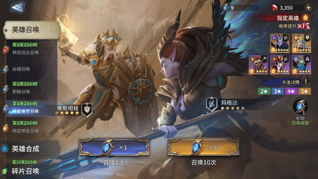 《潮汐守望者》将在12月05日到12月08日(23:59)会开放新一轮的双UP池,在活动期间抽取康斯坦丝、玛格达概率将提升15倍,参与UP池召唤是我们定向获取新英雄的最佳渠道。今天给小伙伴们带来康斯坦丝&玛格达综合测评,在大家在抽卡、养成时可作为参考。 一、卡池分析 英灵召唤池为200抽保底,在获取五星英雄时有15倍的概率获得康斯坦丝或玛格达。康斯坦丝职业是守护者,但可为周围队友提供高额的治疗,开
