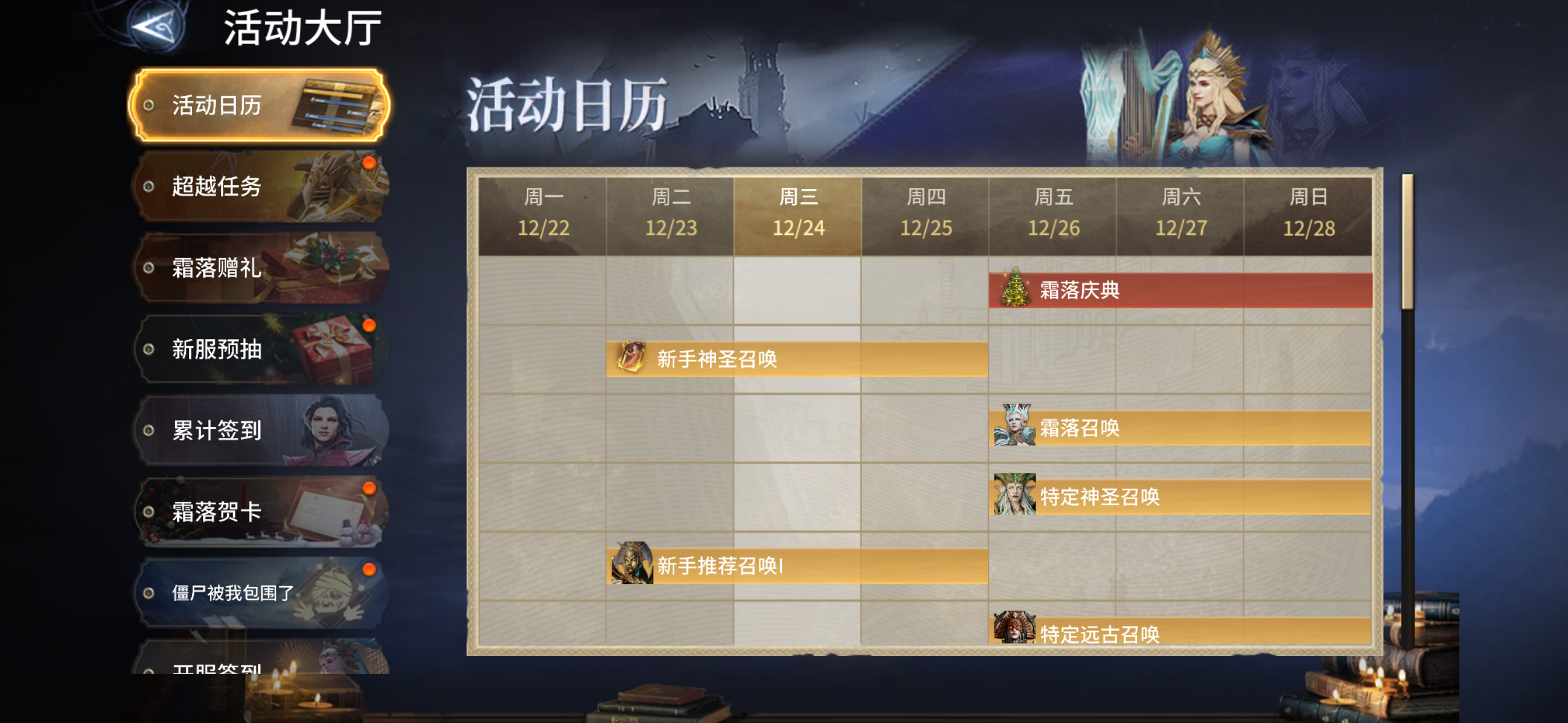 #潮汐双旦许愿版本# #潮汐圣诞心想事成# 祝全体指挥官:圣诞快乐,心想事成!自12月24日起参与《双旦许愿版本》,最高可领取90抽、传说英雄魂晶*1、全新五星英雄吉赛尔*1、哈尔兹王圣诞皮肤*1、哈苏年度皮肤*1(需兑换券)、圣诞专属坐骑*1、营地圣诞召唤石皮肤*1!传说英雄魂晶、哈尔兹王皮肤、圣诞专属坐骑的领取方式:【活动大厅】-【霜落任务】元旦夜更有额外专属10连红抽福利!——