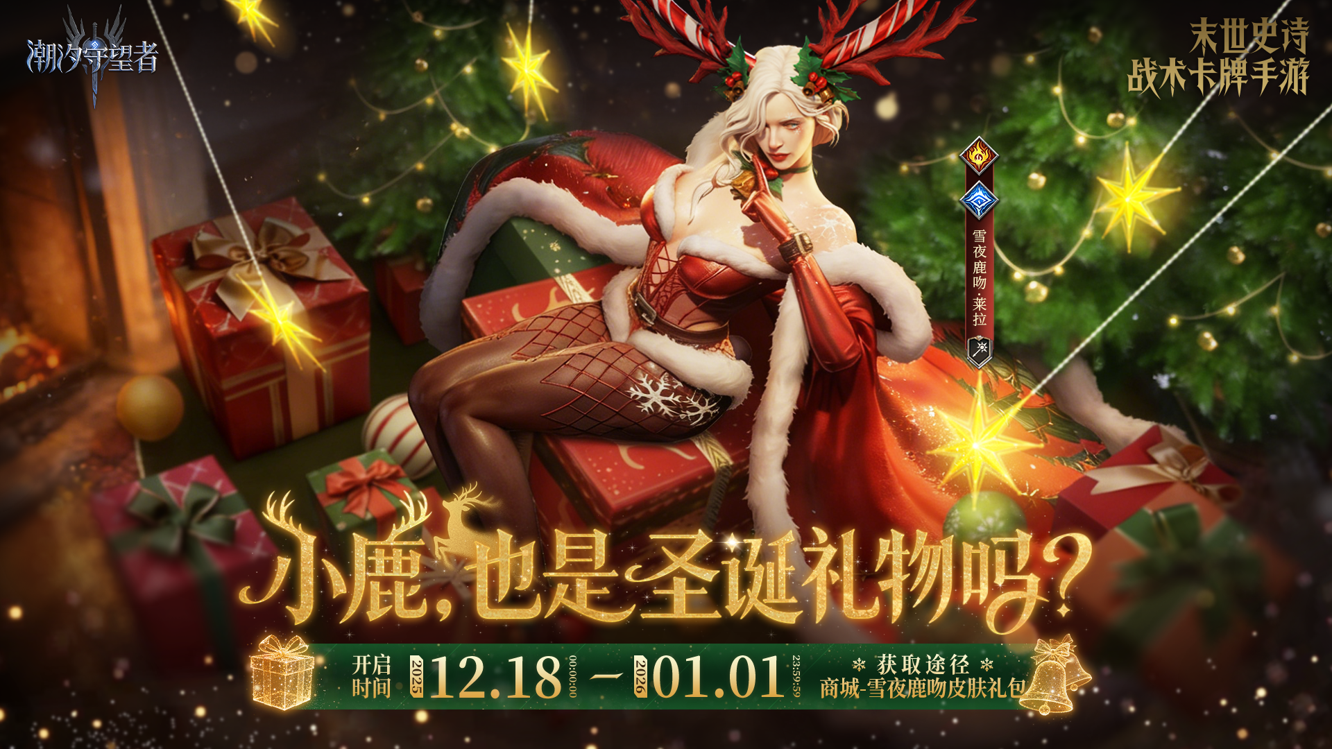 ◆开启时间◆2025年12月18日00:00:00- 2026年01月01日23:59:59获取途径:商城【雪夜鹿吻】皮肤礼包。
