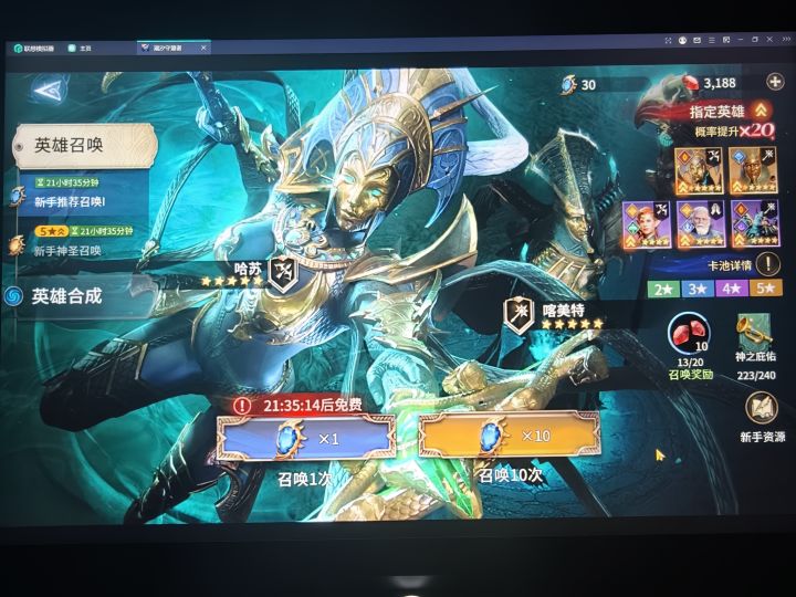 目前第三天,新手池出了隐射,累抽给了天使,池子出了哈苏,后面有大圣的池子,要不要攒着抽跳过小丑抽猴子