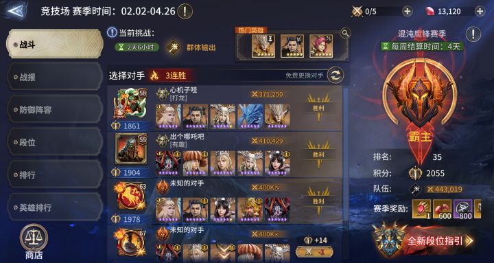 打了两天,不知道多少次,都快打吐了,终于把这俩13给通了,太吃英雄和装备了